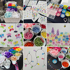 Fun and inclusive crafting with a focus on sensory sensation and stimulation, available as a relaxed sit-down workshop or drop-in craft station. First we make magical sensory bottles. Metallic beads, mirrorred stars, shining sequins, sparkling glitter, and an array of luminescent and iridescent items magically float inside these mesmerising liquid-filled bottles! Your chosen ingredients can be added by hand, scoop or funnel, aided as necessary. Once your creation is complete, we’ll glue the lid on tight and the soothing snow-globe effects of the finished bottle can be enjoyed at home or on the go. Next choose a tactile craft to feel, tinkle, flutter or shine! Crafts [and actions involved] include: Fluttery recycled tin can* ribbon windsock [choosing colours, looping ribbon through tin tube, tying knots] Feely felt ball garland [choosing colours, threading with a semi-sharp needle] Shiny recycled glass jar* nightlight or garden lantern (including LED lights) [drawing a design onto the jar with permanent pens] Feely fingerprint or handprint art [pressing an inked finger - can wear a latex-free glove to avoid direct skin contact - onto a canvas to complete a pre-drawn design] Shiny UV colour change glow-in-the-dark jewellery and accessories [picking colours, threading large hole beads onto elastic cord, option to add threading glow poms with a semi-sharp needle] Fluttery tinkly recycled bottle* flower chime [drawing a design with permanent pens, choosing jingle bell colours, threading onto wire] Feely fluffy pom garland and shiny nightlight jar (including LED lights) [choosing colours, threading with a plastic needle, posting poms in jar] A fun and accessible craft party with a sensory theme and offering crafts to engage guests with different abilities, including those who may be assisted. Go large! See my "splat art" listing for info on creating a unique party memory! £180 for 8; £18 per additional guest Suitable for ages 6+ I am happy to run this party with large groups. For 13 or more guests I bring an assistant to make sure everything runs smoothly and all guests can be attended to, charged at £30. For 20 or more guests, I would recommend two assistants (£60). *All recycled materials are lovingly washed, stripped, filed, sanded, drilled and/or stencilled to prepare them for crafting. Any remaining adhesive residue or imperfections will be masked during the making process and are an inherent part of the eco crafting charm!